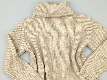 Sweter damski z golfem, kremowy/ekri - Krój: luźny, lekko cropped - Dekolt: wysoki golf, elastyczny - Rękawy: długie, obniżona linia ramion - Dzianina: prążkowana, miękka, przyjemna w dotyku - Roz...