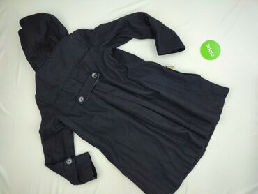 Czarny płaszcz damski marki Topshop, dwurzędowy, z szerokim kołnierzem i klapami. Płaszcz ma długie rękawy z guzikami na mankietach oraz pagony na ramionach. Wykonany z mieszanki materiałów, w tym ...