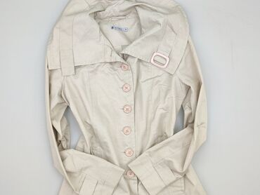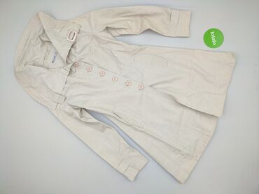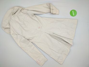 Płaszcz damski De Facto, rozmiar 36 - Fason: klasyczny, lekko taliowany, bez zapięcia z przodu (gładki front z pionowymi przeszyciami modelującymi sylwetkę) - Kolor: jasny beż/ecru - Długość: do p...