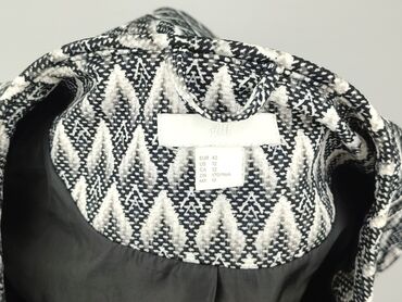 Płaszcz damski H&M - Krój: prosty, bez zapięcia (otwarta, elegancka narzutka) - Długość: do połowy uda - Rękawy: długie - Wzór: geometryczny, czarno-biały (trójkąty/romby) na całej powierzchni - D...Stan: