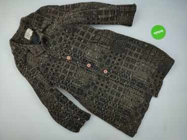 Damski płaszcz C&A - Kolor: ciemny brąz - Fason: klasyczny, lekko taliowany, długość do połowy uda - Zapięcie: rząd guzików z przodu - Kołnierz: szeroki, wykładany - Kieszenie: dwie z przodu (wpus...