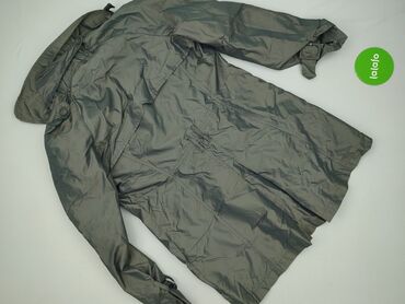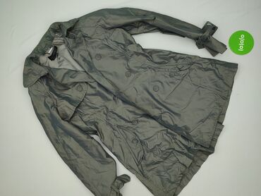 Bez wypełnieniaSzary damski płaszcz przeciwdeszczowy marki Zara Woman. Płaszcz ma klasyczny krój trenczu z dwurzędowym zapięciem na guziki oraz kołnierzem. W talii znajduje się ściągacz, który pozwala na dopasowanie płaszcza do sylwetki. Mankiety rękawów są regulowane za pomocą pasków z klamrami. Po bokach płaszcza widoczne są kieszenie. Materiał ma lekko połyskujące wykończenie. Rozmiar podany na metce nie odpowiada rzeczywistości, rzeczywisty rozmiar S.