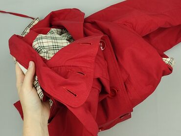Płaszcz damski trench Esmara - Kolor: intensywna czerwień - Krój: klasyczny trencz, dwurzędowy - Zapięcie: guziki z przodu, dodatkowo pasek w talii z prostokątną klamrą - Regulacja: paski z klamra...