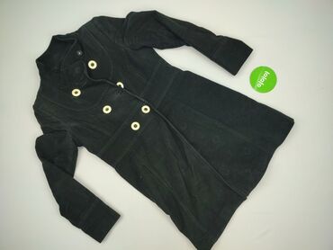 Płaszcz damski H&M - Kolor: czarny - Fason: trencz z kołnierzem z klapami, dwurzędowe zapięcie na guziki - Pasek w talii z klamrą + szlufki, dodatkowe patki/przeszycia podkreślające linię talii - ...