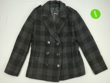 Płaszcz damski F&F, rozmiar 14 (na metce). - Klasyczny fason zapinany na rząd guzików z przodu - Szeroki kołnierz, marszczenia na rękawach i z tyłu - Dwie naszywane kieszenie z przodu - Tkanina w ...