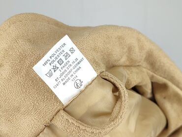Płaszcz damski L - Marka: na metce widoczne charakterystyczne logo (rozmiar L) - Kolor: beżowy/kawowy - Wzór materiału: drobna, jasna faktura przypominająca skórkę (mikrowzorek) - Fason: lekko roz...