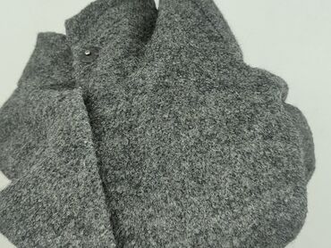 Szary żakiet damski o minimalistycznym kroju - Klasyczny, prosty fason z zapięciem na 3 guziki z przodu - Asymetryczna stójka/kołnierz z wewnętrzną wstawką w jaśniejszym melanżu - Dwie duże naszyw...