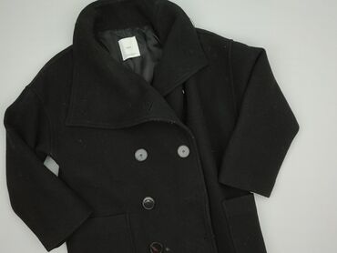 - Fason: ponadczasowy pea coat/trencz z szerokim kołnierzem, lekko przed kolano