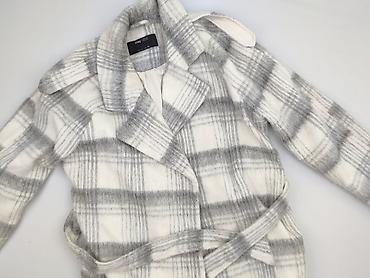 Płaszcz damski Sinsay, kolekcja Outerwear - Rozmiar: XS / EU 34 (na metce) - Krój: klasyczny, jednorzędowy z klapami; długość do kolan - Wzór: krata w odcieniach szarości z różowymi akcentami - Mat...