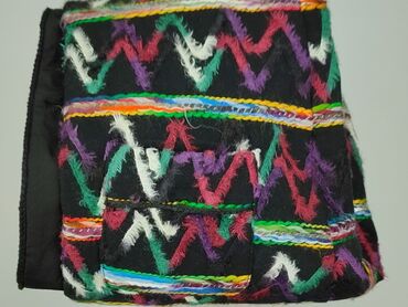 - Wzór: czarne tło z kolorowym, wypukłym, pętelkowym haftem w zygzaki i pasy (odcienie zieleni, fioletu, czerwieni, bieli, żółci, pomarańczu, niebieskiego)