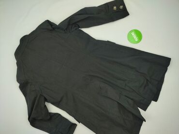 Damski płaszcz bez zapięcia, kolor czarny, długość za kolano. Klasyczny kołnierz z klapami, prosta linia, wygodne naszywane kieszenie z przodu. Materiał z metki: 90% poliester, 7% wiskoza, 3% elast...