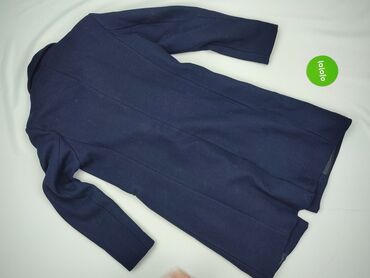 Granatowy damski płaszcz/żakiet bez zapięcia - Fason: prosty, lekko dopasowany, długość do połowy uda - Rękawy: 3/4 - Dekolt: okrągły - Kieszenie: dwie wpuszczane z przodu - Tkanina: strukturalna ...