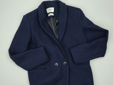 Płaszcz damski Reserved - Model: minimalistyczny, bez kołnierza, zapinany na ukryte zapięcie z przodu (gładka listwa) - Kolor: granatowy melanż - Rozmiar z metki: 38 - Fason: prosty/lekko oversize...