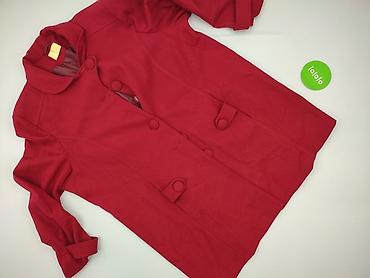 Płaszcz damski J & S Collection, czerwony, z kapturem. - Krój: lekko taliowany, panelowy, podkreślający sylwetkę - Zapięcie: rząd ozdobnych guzików z przodu - Kaptur: obszerny, zintegrowany - Ręka...