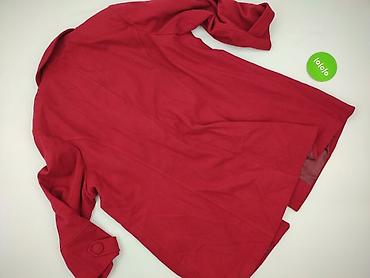 Damski płaszcz/oversize’owy trencz w intensywnym czerwonym kolorze. - Krój: luźny, z klapami jak w marynarce; długość za kolano - Zapięcie: na guziki z przodu - Rękawy: 3/4 z potrójnymi guzikami p...