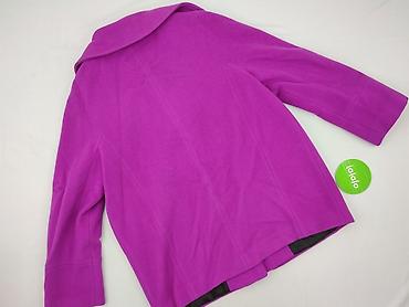 Fioletowy płaszcz/krótki płaszcz damski z wełny - Materiał: 70% wełna, 30% bawełna; podszewka w kolorze fioletowym - Krój: krótki, dopasowany, z modelującymi przeszyciami - Zapięcie: trzy duże guz...Stan: