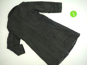 Płaszcz damski LOV.LI, rozmiar 40 - Krój: prosty, bez zapięcia, okrągły dekolt - Długość: midi - Kolor: czarny z kontrastowymi, zielonymi wstawkami z miękkiego pluszu na mankietach i przy kieszeni...