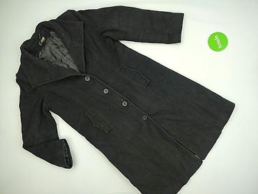 Damski płaszcz w kratę, wełniany – czarno-biały - Krój: klasyczny, do połowy uda, lekko taliowany - Zapięcie: dwurzędowe/na dwa guziki z przodu - Kołnierz: z klapami - Wzór: czarno-biała, melanżow...Stan:
