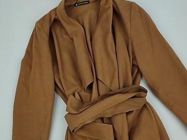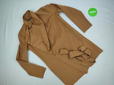Damski płaszcz/ramoneska bez zapięcia, z paskiem – kolor musztardowy - Fason: lekko oversize, wiązany w talii paskiem, bez podszewki - Kołnierz: szerokie, miękkie klapy typu waterfall - Długość: d...
