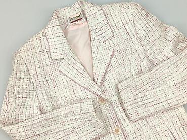 Różowy płaszcz/długa marynarka damska „Made in Italy” - Krój: prosty, bez kołnierza, długość do połowy uda, długi rękaw - Zapięcie: dwa ozdobne metalowe haczyki z przodu - Detale: dolna część z aż...