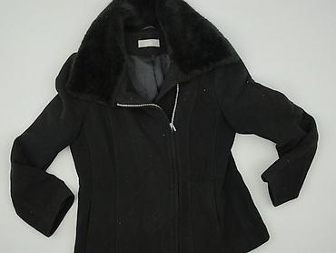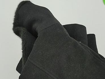 Płaszcz damski czarny Space Button, rozmiar 38 - Krój: długi płaszcz z paskiem w talii (metalowa klamra) podkreślającym sylwetkę - Zapięcie: suwak kryty listwą + wysoki kołnierz zapinany na guziki...