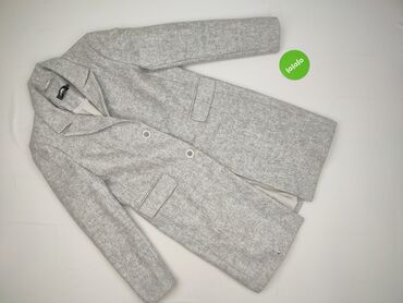 Płaszcz damski H&M, rozmiar EU 34 (US 4, CA 4, CN 165/84A). Kolor: ciemnoszary/melanż. Opis: - Dwurzędowy fason inspirowany militarnym stylem, z dużym kołnierzem. - Dekoracyjne metalowe guziki...