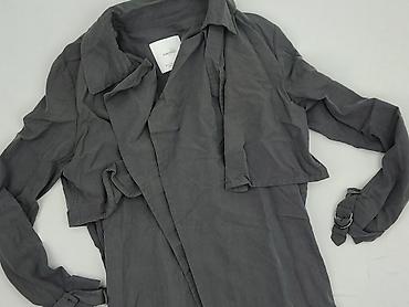 - Fason: lekki, dłuższy trencz bez zapięcia z paskiem w talii
