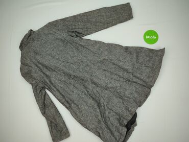 Płaszcz damski, rozmiar M - Kolor: jasnoszary melanż - Fason: prosty, długość midi - Zapięcie: cztery duże guziki z przodu - Kołnierz: stojący, wysoki - Rękawy: długie, raglanowe - Kieszenie: dwie...