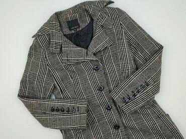 Płaszcz/lekki trencz damski AMISU - Kolor: czarny - Rozmiar z metki: EU 36 (US/CA 8, CN 165/88) - Fason: klasyczny, wiązany w talii paskiem; klapy z kołnierzem, naramienniki z dekoracyjnymi guzika...
