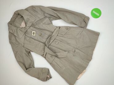 Damski trencz Lady Style Mi - Klasyczny, beżowy płaszcz z paskiem w talii - Długość do połowy uda - Kołnierz z szerokimi klapami - Pagony na ramionach i mankietach, ozdobne srebrne guziki - Liczne...Stan: