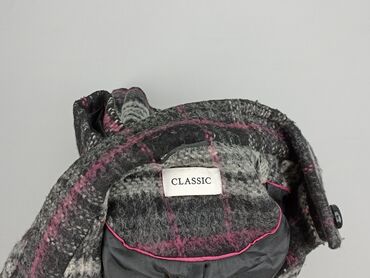 Ten elegancki płaszcz damski marki Bonita, rozmiar S, charakteryzuje się czarno-białym, teksturowanym wzorem. Posiada klasyczny kołnierz i zapięcie na guziki, co nadaje mu ponadczasowy wygląd. Pods...