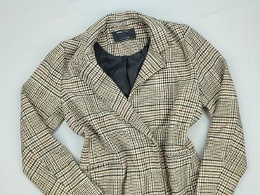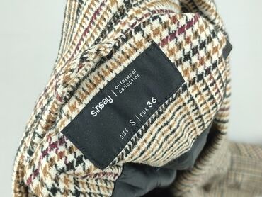 Płaszcz damski Sinsay – Outerwear Collection - Rozmiar: XS / EU 34 (widoczny na metce) - Kolor: granatowy melanż - Długość: przed kolano, fason lekko dopasowany - Materiał wierzchni: miękka, pętel...