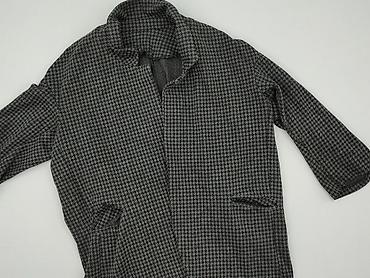Damski płaszcz H&M Divided - Model: lekki płaszcz/żakiet bez zapięcia - Kolor: ciemnoszary melanż z drobną, „przetykaną” fakturą - Krój: prosty, długość do kolan, rękawy 3/4–7/8, bez kołnierza (ot...