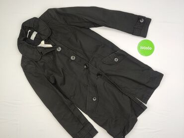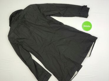 Płaszcz damski House – lekki trencz w grochy - Marka: House - Rozmiar z metki: S (164–176 / 92) - Krój: dwurzędowy trencz z kołnierzem - Wzór: białe grochy na czarnym tle - Materiał: 100% polieste...