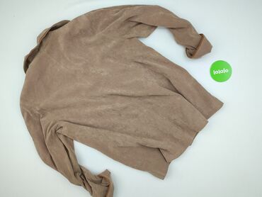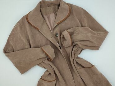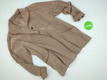 Płaszcz damski L - Marka: na metce widoczne charakterystyczne logo (rozmiar L) - Kolor: beżowy/kawowy - Wzór materiału: drobna, jasna faktura przypominająca skórkę (mikrowzorek) - Fason: lekko roz...