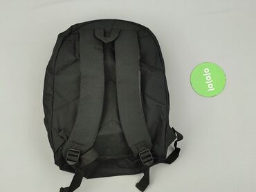 Plecak damski, czarny, z subtelnym pasiastym wzorem - Materiał: gładka tkanina o satynowym połysku z pionowymi pasami - Zamknięcie: klapa z metalową ozdobą w kolorze srebrnym + ściągany sznurkiem ...