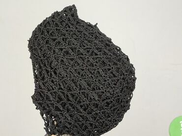Czarny, luźno tkany top damski w stylu poncho, z dekoltem typu łódka. Rękawy i dół wykończone są ozdobnymi frędzlami, co nadaje mu swobodny, etniczny charakter. Wykonany z lekkiego materiału, ideal...