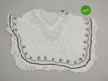 Biała luźna narzutka/ponczo damskie - Kolor: biały - Krój: oversize, lejący, rękawy typu kimono - Dekolt: w kształcie litery V z niewielkim rozcięciem - Tył: dłuższy, częściowo z półprzezroczystym...