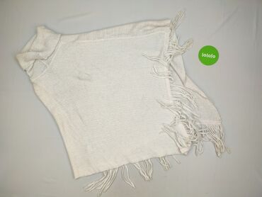 Biała, włoska narzutka/ponczo dzianinowe z połyskiem - Luźna, otwarta forma bez zapięcia – idealna do narzucenia na bluzkę lub sukienkę - Grubszy, ażurowy splot „chunky knit” - Kolor: śmietankowa ...