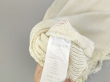 Ażurowy kardigan damski Janina - Rozmiar z metki: L/XL - Kolor: beżowy/ecru - Fason: luźny, otwarty, bez zapięcia; obniżona linia ramion, rękawy do łokcia z szerokim, prążkowanym mankietem - Splot...