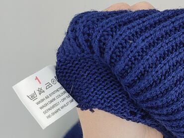 Granatowy sweter damski z golfem - Fason: luźny, oversize z krótkim golfem/kominem - Kolor: ciemny granat - Dzianina: miękka, drobny splot; ozdobne warkoczowe pasy na dole i przy rękawach - Dół i ...