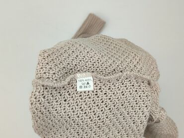 Ażurowy sweter/ponczo damskie - Kolor: beżowy, neutralny odcień - Fason: luźny, lekko oversize; krótki rękaw typu kimono - Dzianina: grubszy, miękki splot z dużymi oczkami (dziurkowany/ażurowy) - ...