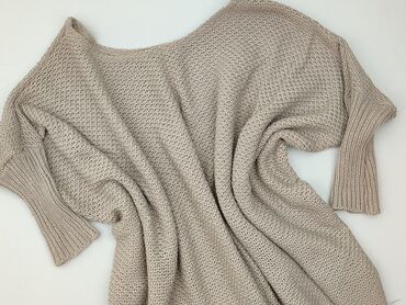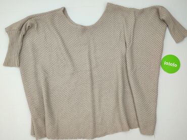 Ażurowy sweter/ponczo damskie - Kolor: beżowy, neutralny odcień - Fason: luźny, lekko oversize; krótki rękaw typu kimono - Dzianina: grubszy, miękki splot z dużymi oczkami (dziurkowany/ażurowy) - ...Stan:
