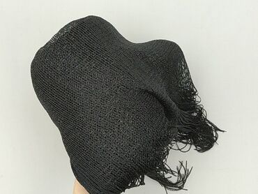Czarne ponczo damskie, rozmiar S. - Krój: luźne, trójkątne ponczo z wydłużonymi bokami; na końcach ozdobne chwosty. - Materiał: 80% wiskoza, 20% poliamid – miękki, lekko elastyczny, przyjemny w do...