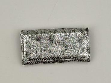 Portfel damski, srebrny, z połyskiem holograficznym i fakturą skóry węża.