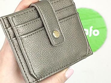 Kompaktowy damski portfel/karta holder w kolorze metalicznej oliwki/szarości.