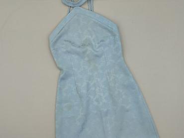 Sukienka damska Pretty Girl, rozmiar M - Fason: rozkloszowany, bez rękawów, z modelującymi cięciami i zaszewkami - Kolor: jasny błękit z subtelną, złotą nitką - Tkanina żakardowa z wypukłym kwiato...