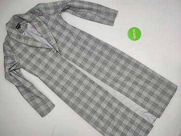 Damski płaszcz/żakiet w kratę, rozmiar M - Krój: dwurzędowy, lekko taliowany, długość do połowy uda - Wzór: klasyczna kratka księcia Walii (czarno‑szaro‑biała z subtelną, ceglastą nitką) - Materia...