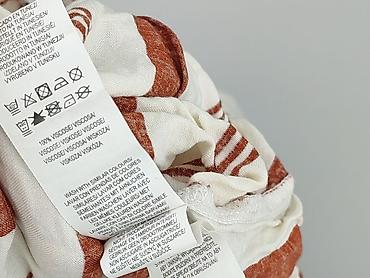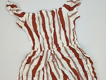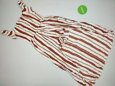 Kombinezon damski marki Primark wykonany w 100% z wiskozy, co zapewnia lekkość i przewiewność. Charakteryzuje się wzorem w biało-brązowe paski, które nadają mu letniego charakteru. Model z dekoltem hiszpańskim i szerokimi nogawkami, idealny na ciepłe dni. Wyprodukowany w Tunezji.