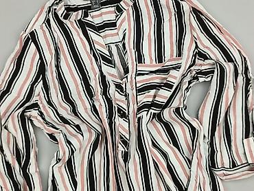 Bluzka damska Primark - Model: koszula/bluzka z guziczkami z przodu - Krój: lekko wydłużony tył, stójka zamiast klasycznego kołnierzyka - Rękawy: długie, zapinane na mankiety - Wzór: białe tło z k...